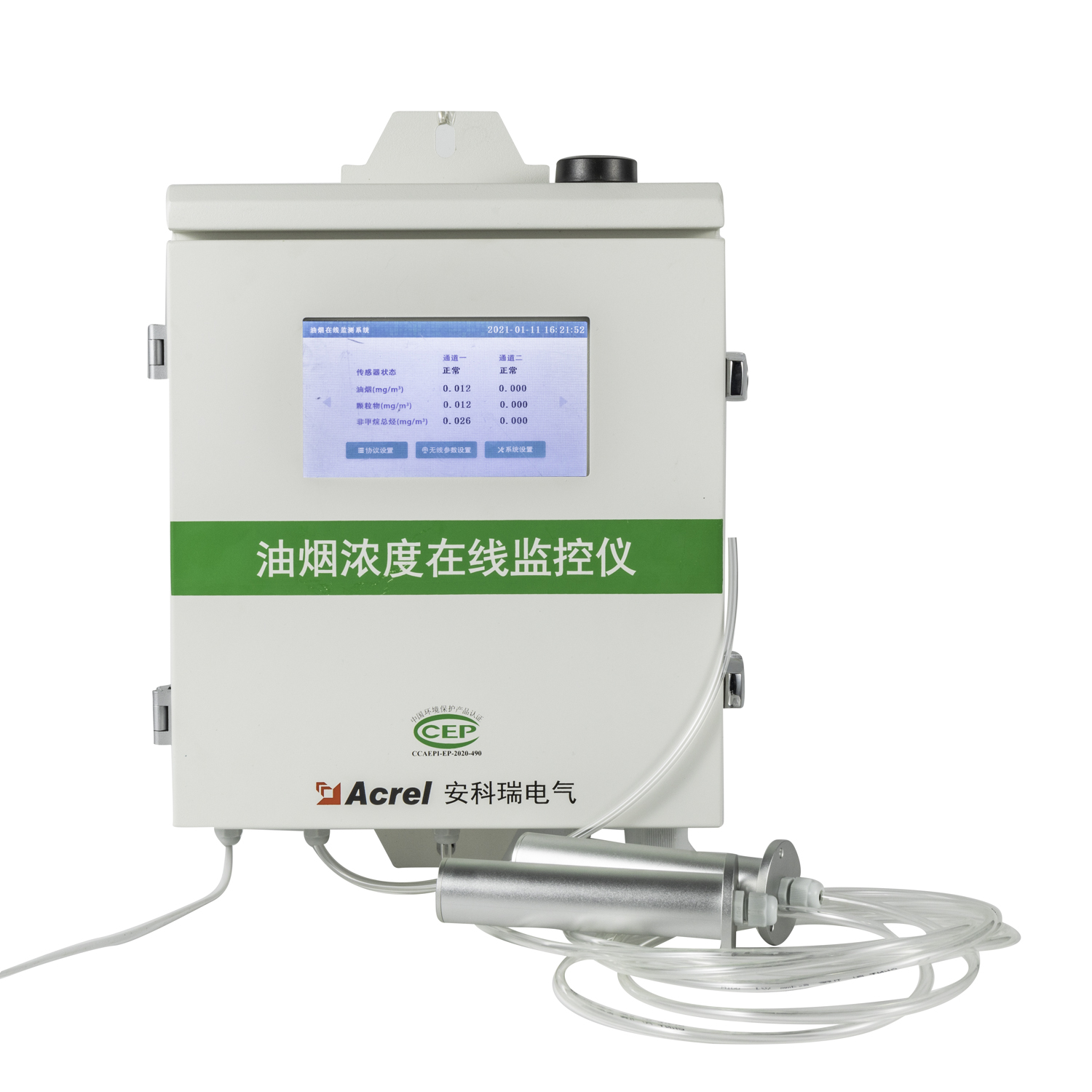 ACY100型飲食業(yè)油煙濃度在線監(jiān)控儀是針對(duì)飲食業(yè)廚房油煙排放場合而設(shè)計(jì)的,由油煙探頭、傳感器、控制板和顯示屏等部分組成,用于監(jiān)控油煙、顆粒物和非甲烷總烴等污染物的排放狀況和過程參數(shù),以及風(fēng)機(jī)和凈化器的電流和開關(guān)狀態(tài)等,并可通 過RS232/485或4G等方式進(jìn)行數(shù)據(jù)傳輸?shù)脑O(shè)備。監(jiān)控儀支持最多兩路油煙排放煙道的污染物測量。