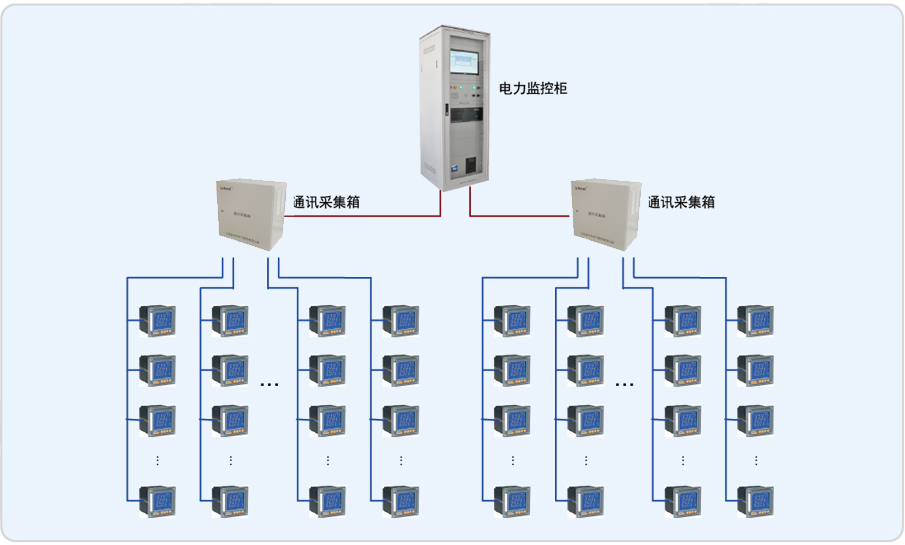 陜西中煙電力系統(tǒng)監(jiān)控現(xiàn)場分為兩個低壓配電室:東配電室和西配電室。其中監(jiān)控室位于東配電室內(nèi)。現(xiàn)場儀表為上海安科瑞ACR系列智能電力儀表,儀表通過MODBUS協(xié)議RS485總線連接到串口服務器上,再與計算機連接,實現(xiàn)數(shù)據(jù)交換。