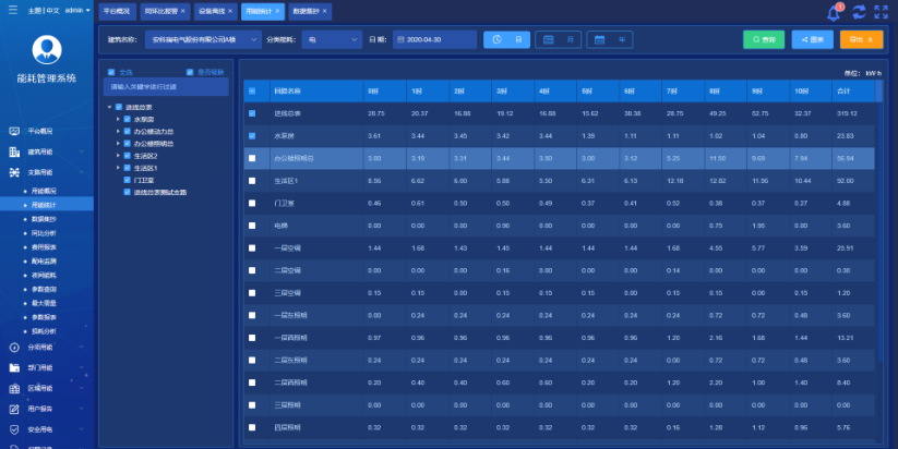 按照分項/區(qū)域/部門等不同的組織方式進(jìn)行報表統(tǒng)計與展示,方便用戶從多個維度使用用能報表。
