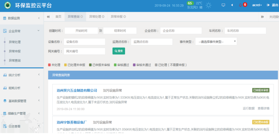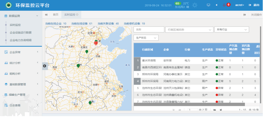 全面推進(jìn)打贏藍(lán)天保衛(wèi)戰(zhàn),打好碧水保衛(wèi)戰(zhàn),打勝凈土保衛(wèi)戰(zhàn),加快生態(tài)環(huán)境保護(hù)、建設(shè)美麗中國。環(huán)保用電監(jiān)管系統(tǒng)針對(duì)企業(yè)內(nèi)的環(huán)保設(shè)施、設(shè)備運(yùn)行狀況進(jìn)行檢測(cè),發(fā)揮環(huán)保設(shè)備的作用,提高監(jiān)察效率,并能夠動(dòng)態(tài)掌握治污治理執(zhí)行情況和異常預(yù)警提供支持,安科瑞憑借監(jiān)控領(lǐng)域里多年的技術(shù)力量和豐富經(jīng)驗(yàn),創(chuàng)新研發(fā)了AcrelCloud-3000環(huán)保設(shè)施用電監(jiān)管云平臺(tái),依托快速發(fā)展的物聯(lián)網(wǎng)技術(shù)、電力參數(shù)傳感技術(shù),實(shí)時(shí)采集企業(yè)總用電、工藝生產(chǎn)設(shè)備用電、污染治理設(shè)施設(shè)備用電等數(shù)據(jù),通過設(shè)施運(yùn)行停車分析、越限分析、停/限產(chǎn)分析、工藝關(guān)聯(lián)分析等,及時(shí)發(fā)現(xiàn)環(huán)保治理設(shè)施、設(shè)備等未開啟、空轉(zhuǎn)、減速、降頻以及異常關(guān)閉等未正常工作的情況;同時(shí),通過數(shù)據(jù)分析,還可以實(shí)時(shí)監(jiān)控限產(chǎn)和停產(chǎn)整治企業(yè)運(yùn)行狀態(tài)。應(yīng)用范圍: