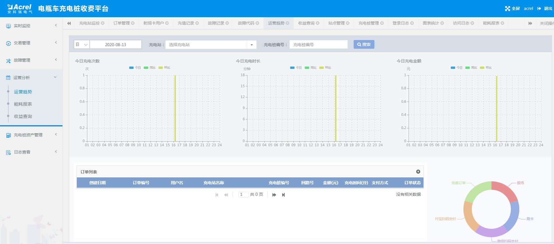 充電價(jià)格策略管理,預(yù)收費(fèi)管理,賬單管理,營(yíng)收和財(cái)務(wù)相關(guān)報(bào)表。